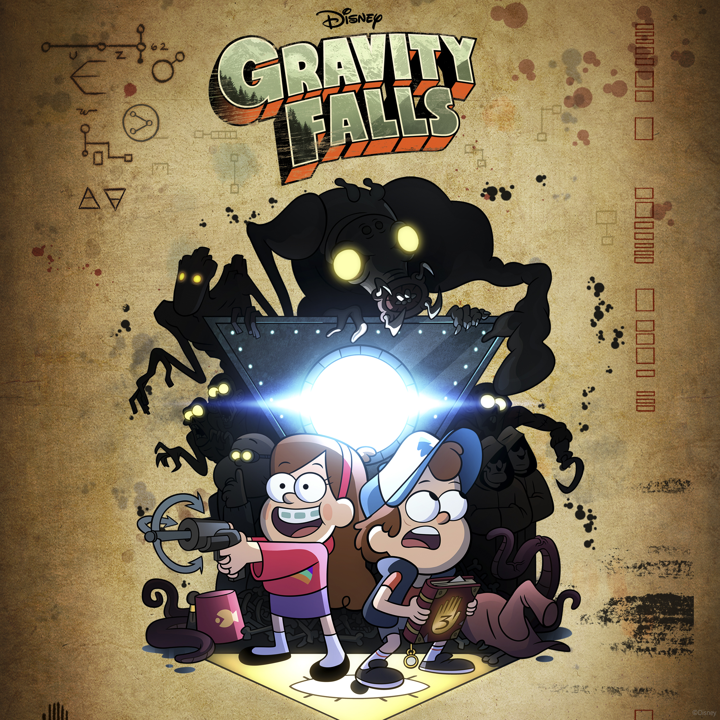 Gravity Falls is a TV series aired on Disney XD. It was created by Alex Hirsch and has 2 seasons, the second season ending with Wierdmageddon Parts 1-3. Although the show doesn't reveal this at the beginning, the story itself starts several decades ago when two almost identical twin boys were born. They were named Stanley and Stanford Pines. Stanley was a normal boy who wasn't very book-smart, but was clever in other ways and was fiercely loyal to his twin. Stanford was incredibly intelligent and very scholarly, but was born with a genetic mutation that caused his hands to have one additional finger each. This made him the target of harassment at a young age, but since Stanley always stood up for him, he never felt entirely alone. When the two were still rather young, they stumbled across an old rowboat-like ship, and they made a pact to sail around the world and live lives of adventure together when they were older. However, as they grew up, it became obvious that genius Stanford was going to be moving on to bigger and better things than his twin. He was offered a scholarship, provided he could impress some officials with a project he had made. Stanley, devastated that his twin might be leaving him behind, tried to sabotage his brother's project, thus forth ruining his chances of getting into his dream college. When their father found out about it, he threw Stanley out of the house, separating him from his parents, his twin, and his little sister. Stanley spent years and years of his life trying to make something of himself, but his attempts at being a famous businessman all ended in failure. Meanwhile, Stanford graduated from a different school with several PhDs and decided to investigate anomalies, like his six fingers. He moved to a small town in Oregon called Gravity Falls, where anomalies were strangely abundant. He built himself a house and lab and recorded his many findings in a series of journals. Stanford deduced that the strange creatures and weird occurrences were all trickling in from rifts in another dimension, a place where these unnatural things originated from. With the help of a college friend, he built a portal that led to it. Before he left, however, he hid two of his three journals that held his research and called up Stanley. Stanford entrusted the last journal to his brother and left our dimension. Stanley spent years trying to locate the other journals and figure out how to bring his twin back, but with little progress. He converted his brother's house into the Mystery Shack, a tourist attraction, to pay the bills and to buy supplies with which to rebuild the portal. Now, as an old man, Stanley takes in his great niece and nephew, the grandchildren of his little sister, for the summer. This is where the first episode of season 1 begins. Dipper and Mabel Pines, 12 year old twins, are being forced to stay in Gravity Falls with their 'Gruncle' (great-uncle) Stan. But when Dipper comes across one of Stanford's journals in the woods and Mabel meets a group of dwarves, the summer proves to become anything but ordinary. The two have been drawn into the weirdness that their Great Uncle spent most of his life researching, and it turns their stay in Gravity Falls into a chronicle of danger, mystery, and adventure that spans over the episodes. Whether freezing evil shape-shifters, returning mermaids to the ocean, encountering time-travelers, defeating zombies, or stealing unicorn hair, the Pines twins are there to uncover the mysteries of Gravity Falls and to save the day.